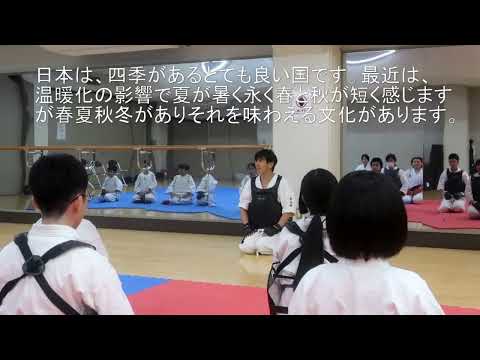 日本は、四季があるとても良い国です。最近は、温暖化の影響で夏が暑く永く春と秋が短く感じますが春夏秋冬がありそれを味わえる文化があります。 今、桜の咲く季節になりました。家族、友達と桜を楽しみ、絆を深め日本の四季に大いに感謝してもらいたいと思います。護身術と基本練習
